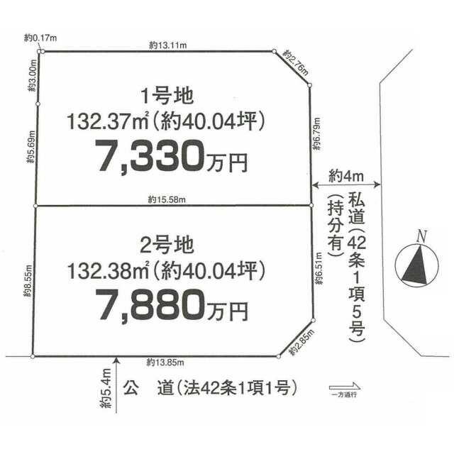 | 土地面積 | 132.37㎡ | 坪数 | 40.04坪 | 坪単価 | 183.06万円 |